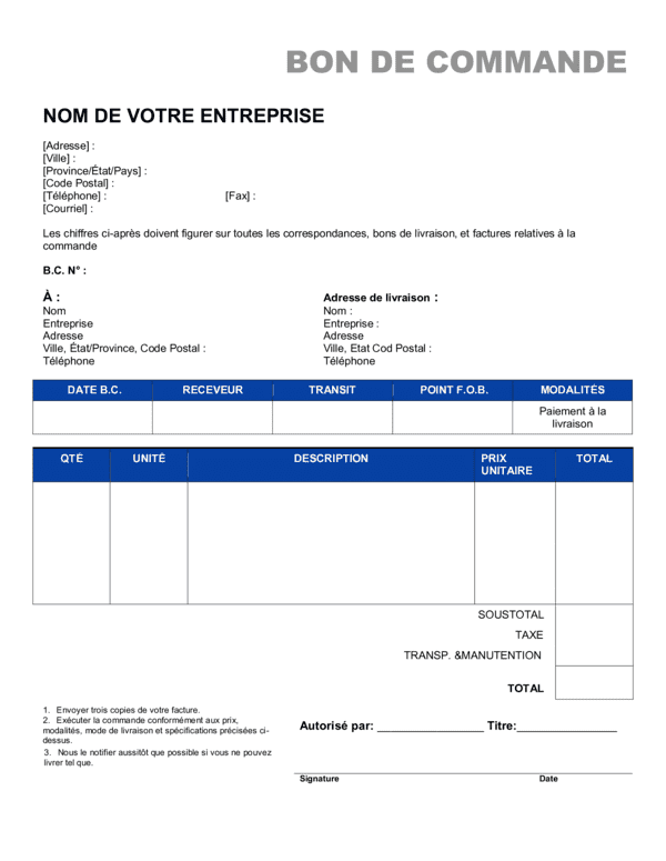 Créez votre Bon De Commande rapidement et facilement